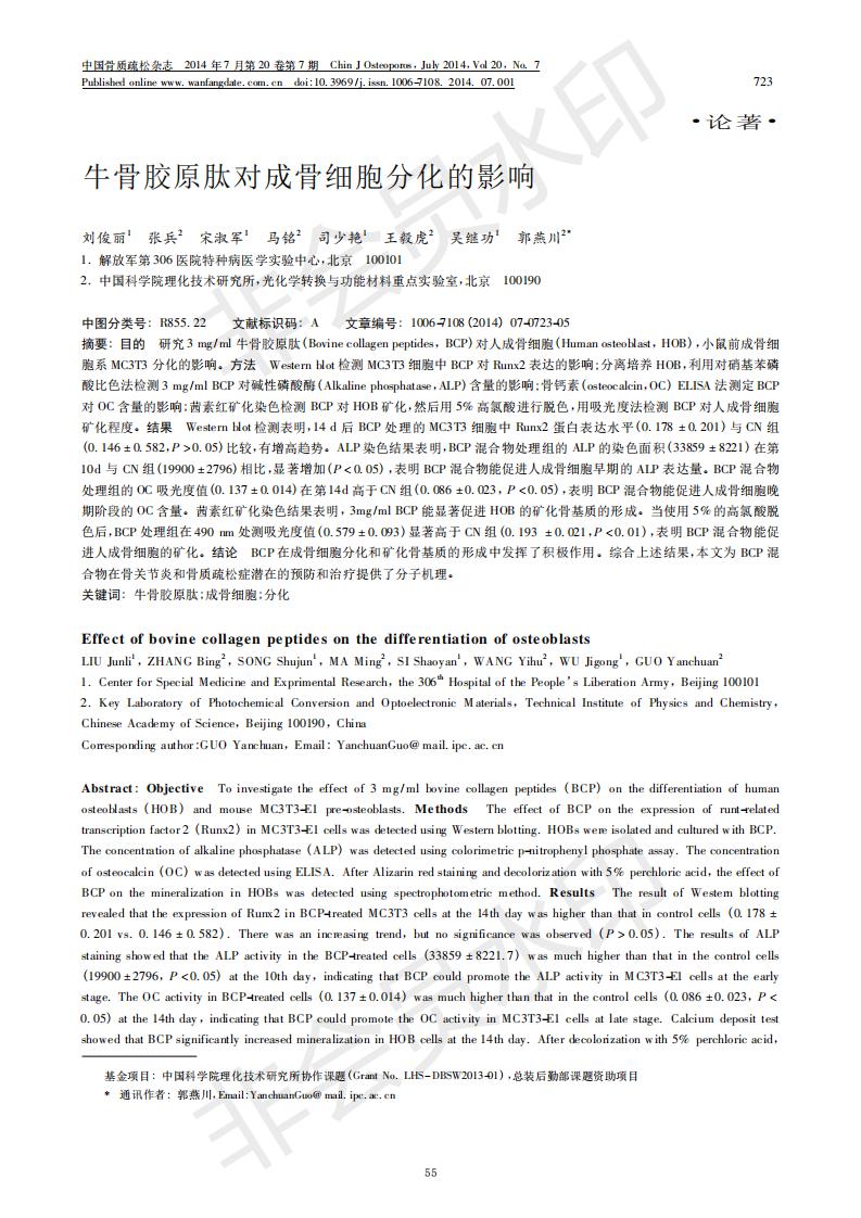 The effect of bovine collagen peptide on osteoblast differentiation