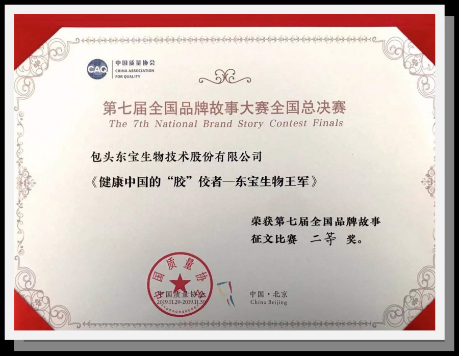 由中國質(zhì)量協(xié)會(huì)主辦、中國質(zhì)量協(xié)會(huì)品牌分會(huì)承辦的第七屆全國品牌故事大賽全國總決賽于2019年11月27-29日在北京舉行,本屆大賽以“品牌升級(jí),世界共享”為主題,鼓勵(lì)各行業(yè)企業(yè)深入挖掘品牌內(nèi)涵,以多視角、多形式講好品牌故事,積極塑造和傳播中國品牌形象。我公司由質(zhì)管部張紅飛撰寫的品牌故事《健康中國的“膠”佼者--東寶生物王軍》獲得了全國品牌故事大賽征文二等獎(jiǎng)的殊榮。