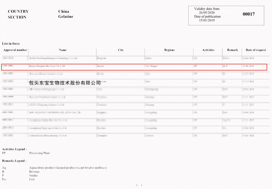10月28日,歐盟官網(wǎng)對外發(fā)布信息,東寶生物技術(shù)股份有限公司取得了對歐盟出口明膠的注冊登記資格,這標(biāo)志著我公司生產(chǎn)的明膠產(chǎn)品將正式挺進(jìn)歐盟市場,開啟“東寶制造”之路。
